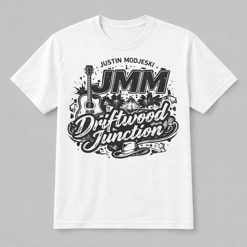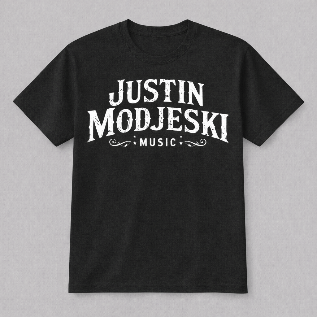 Keep it simple, Simon. Black cotton T-shirt with white lettering.
